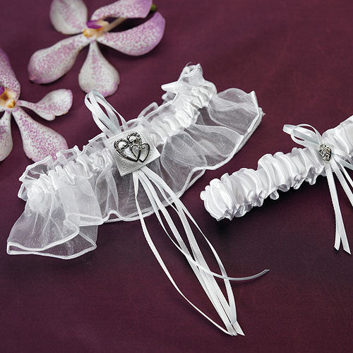 Double Heart Bridal Garter Set White