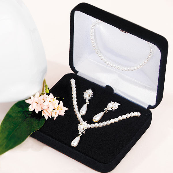 Double White Pearls with Pearl Drop 3 Piece Set