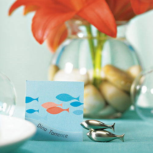 Double Fish Card Holders with Brushed Silver Finish