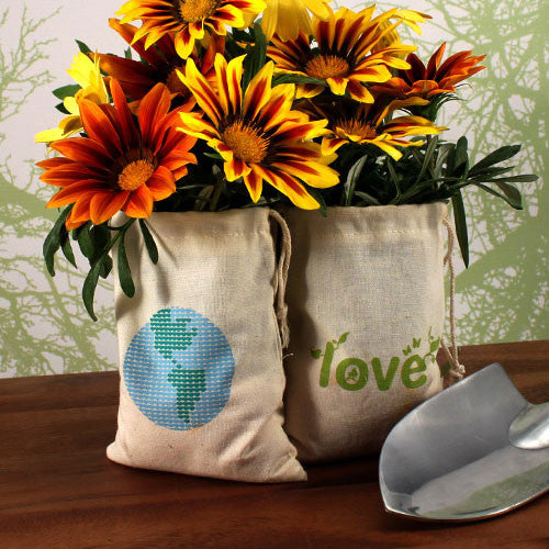 ECO Mini Drawstring Bag made of 100% Organic Cotton Loving Earth Print