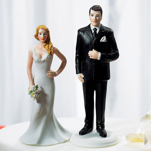 Because we come in all sizes, so do our cake toppers. The fabulously curvy gal is all Bride and our big and tall Groom celebrates those guys that have more of a "linebacker" stature. Hand painted porcelain. Mix and match with our other interchangeable cake toppers.Presently the Bride and Groom Cake Toppers are available with skin tones and hair colors only as shown.