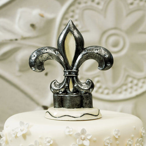This majestic Cake Topper will sit proudly atop any wedding cake. Its decorative Fleur de Lis design is captured flawlessly and adds a look of pure sophistication. Masterfully crafted of poly resin with hand painting and crystal accents.